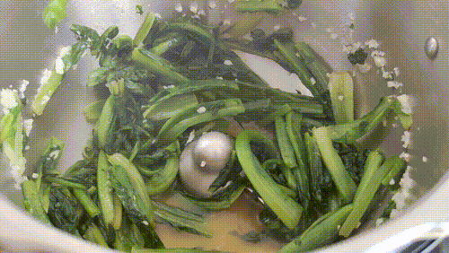 来看看我们炒青菜的过程吧,通过玻璃盖能够清晰看到蔬菜,随着猛火而自动翻炒。等到快要出锅的时候,再加上蒜蓉。这样一盘蒜蓉油麦菜就完美出锅了。如果想追求蒜香,也可以像我一样,在最开始用蒜爆锅。