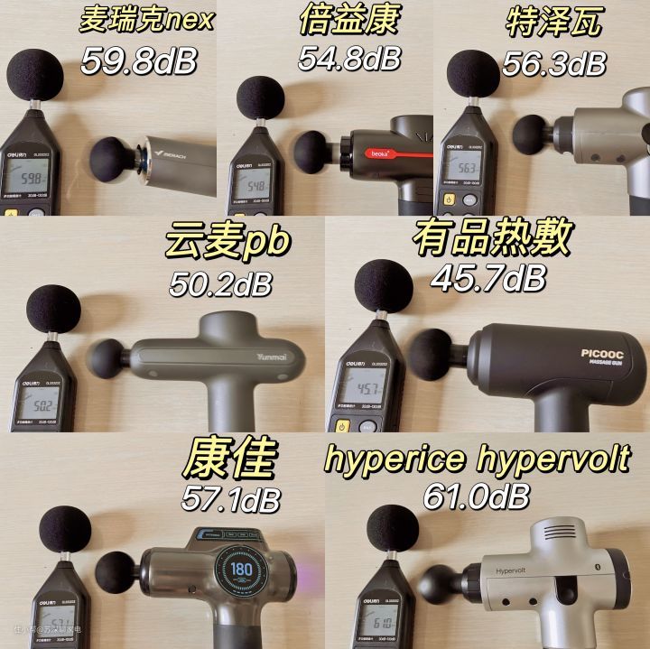噪音的影响的确比较大因为我自己在使用的时候,就被上一个筋膜枪的强噪音搞得社死...下面来看下这七款筋膜枪的最大噪音对比。