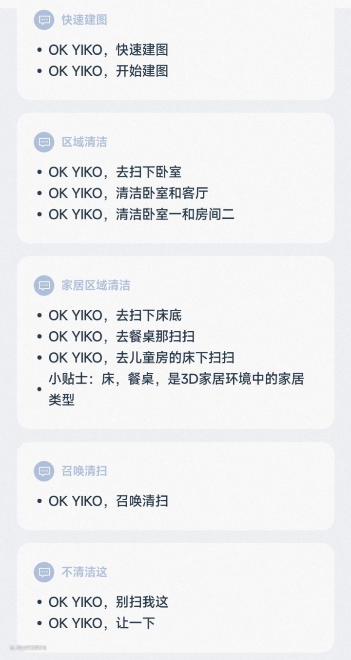 扫地机器人到家后的第一步操作肯定是建图,以往也用过扫地机器人,都需要在连接网络后点击APP,完成建图工作。而有了YIKO语音助手,就可以在绑定APP后,直接对地宝下达“快速建图”或者“开始建图”的指令。