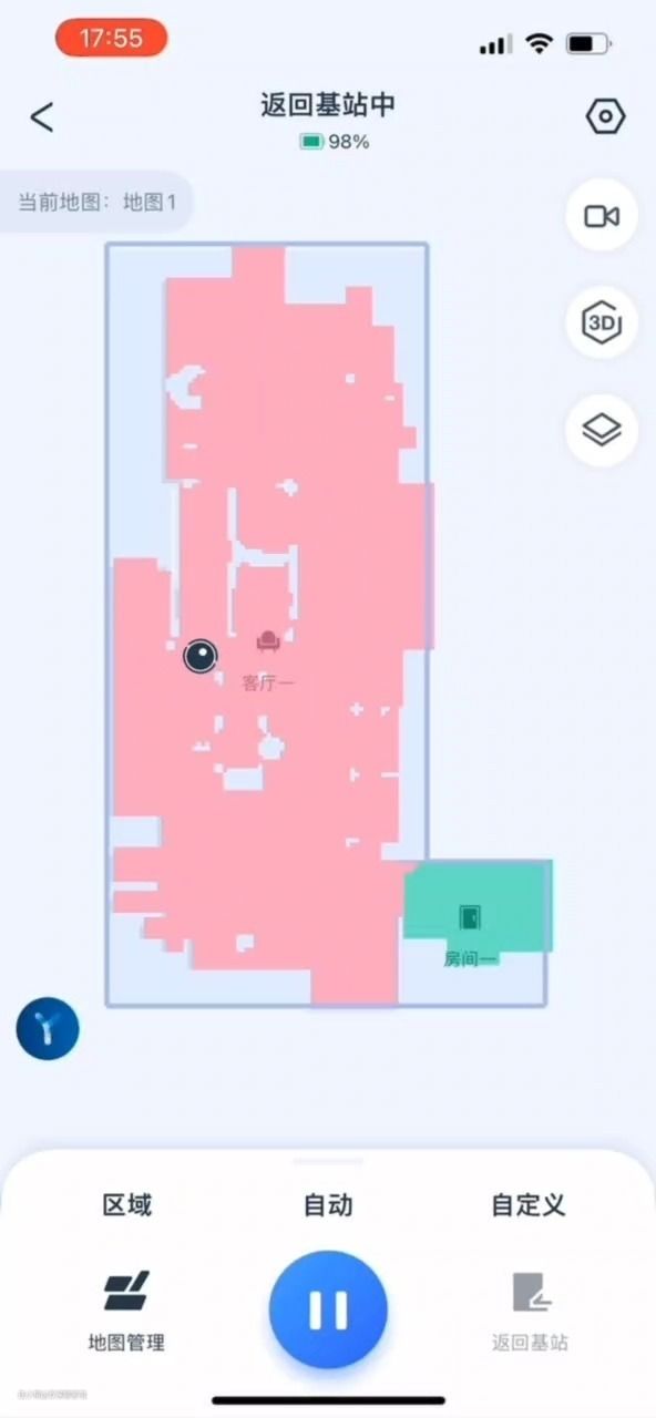 要强调的一点是,机器识别的是人形而不是垃圾,清扫部分也是在声源附近,进行召唤清扫时最好保证自己跟机器之间没有家具遮挡,否则它会“看”不见你,召唤清扫也就失败了。