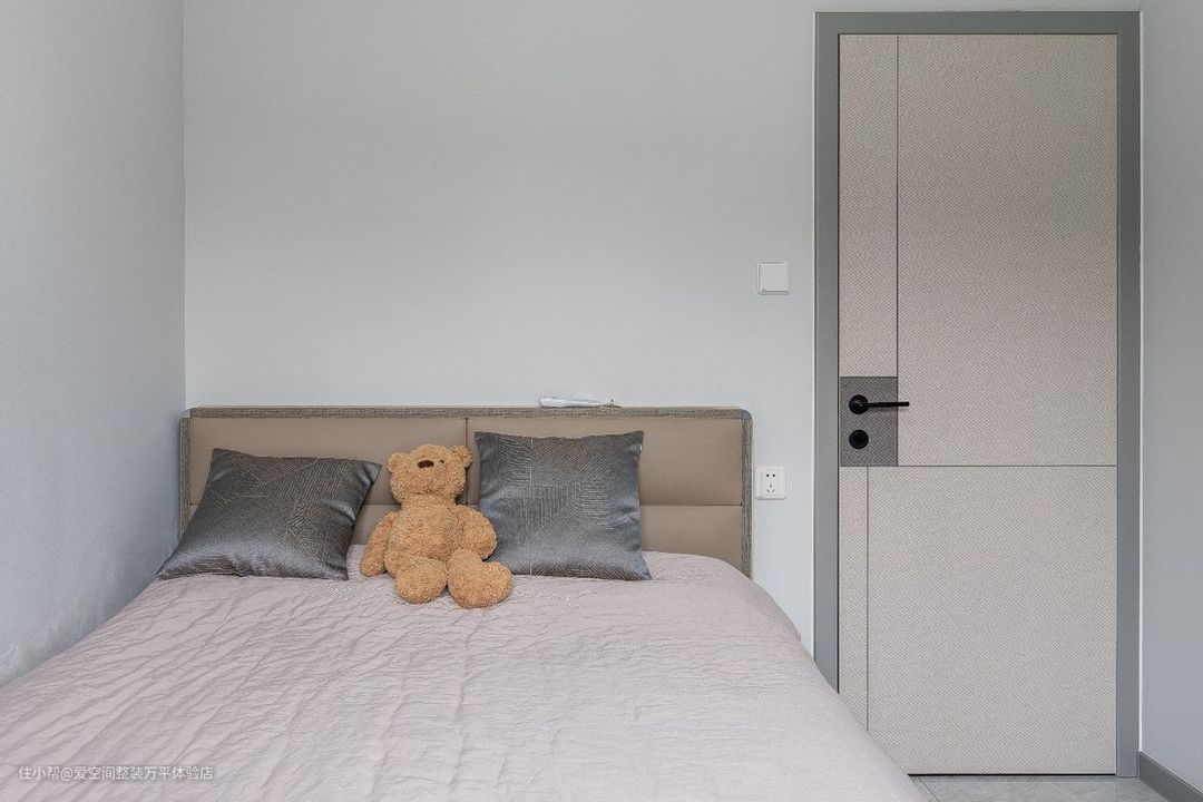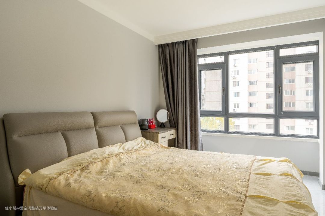 灰色真的太太好看了,真的很适合秋冬了,和主卧的墙漆也是完美结合,头层黄牛皮靠包真是一眼相中,大靠包厚实且很软皮质手感很棒,上班族工作一天回来已经很累了,洗完澡就想早早的躺在床上休息,刷刷手机看看书,大靠背靠上去真的很舒服。
