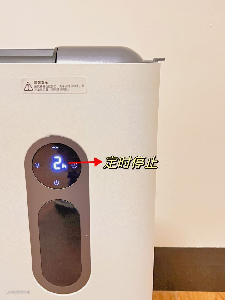 很多取暖器长时间开启,屋内会越来越干,影响舒适度。比如我那位使用电油汀取暖器的朋友就表示,每次开着电油汀睡觉,第二天早晨醒来喉咙必定痛不可支。 为了测评东芝小和煦在长时间开启时对室内湿度的影响,我特意做了个实验。 首先,给小和煦取暖器设置一个定时加热,我在这里设置了2个小时。