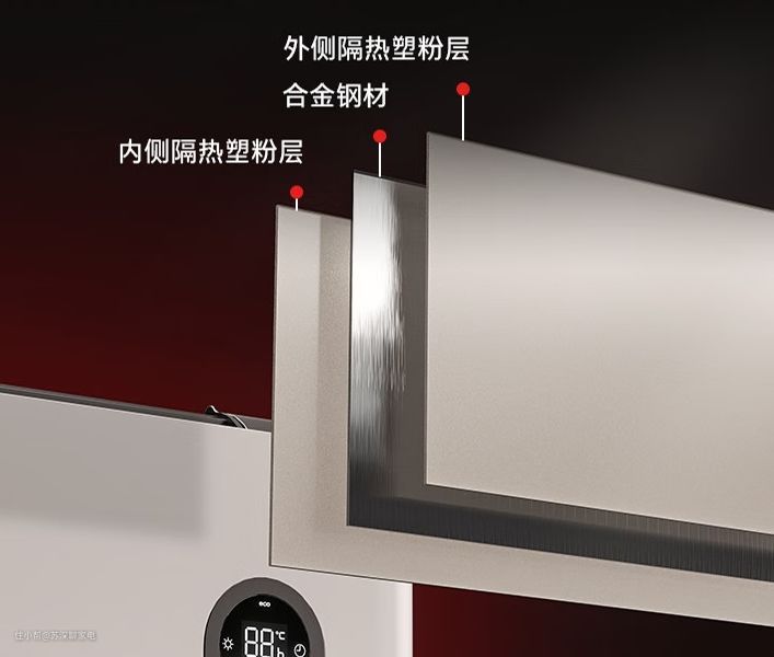 根据详情页来看,东芝小和煦取暖器的外壳分为三层构造,分别是两侧的隔热塑粉层和中间的合金钢材,兼顾了强度与隔热功能。并且,设计团队在更容易与人体接触的屏幕部分进行了加强隔热设计。 从理论上讲,小和煦的隔热功能不错。那么,实际使用中体验又怎么样呢? 在测试取暖器长时间开启后的环境湿度时,我顺便摸了摸取暖器的外壳,并没有感到烫手,三层外壳的隔热效果不错。由于屏幕附近的加强隔热设计,在点击屏幕进行操作时,我的指尖只能感受到温热。综合来看,防烫效果值得肯定。