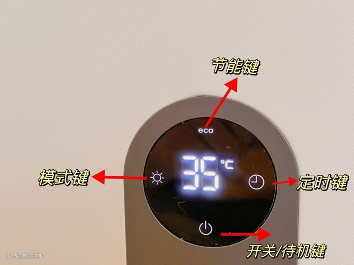 东芝小和煦有四个触控键,分别是ECO节能模式的启停键、模式键、定时键和开关/待机键。关/待机键。