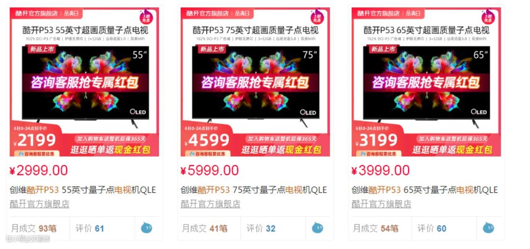 我刚刚又去瞅了一眼,在酷开官方旗舰店购买的话,55英寸的电视机经过满减2000出头就能到手,比现在很多手机都便宜。