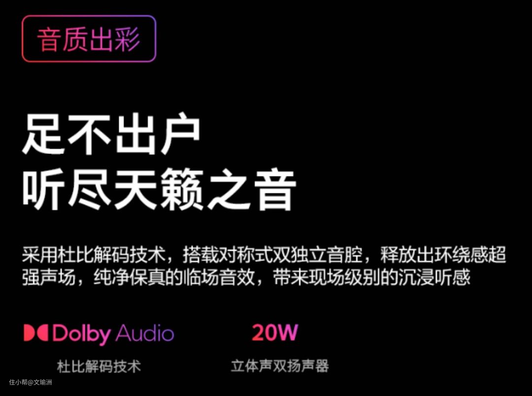 值得一提的是,酷开P53电视里面安装了对称的音响,还搭载了杜比立体声技术,观影时会更容易沉浸进去,与它的好色彩搭配,让我的观影体验上升了不少。