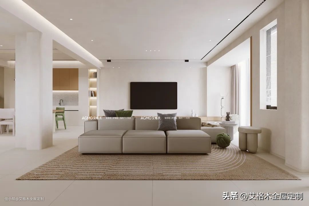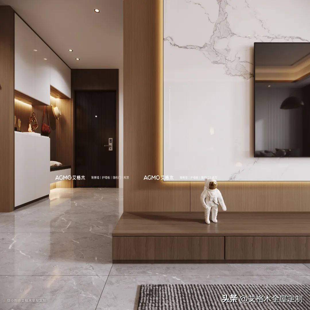 艾格木瓦纳灰岩纹护墙板平铺,简洁高级,既解决收纳问题,更显客厅颜值。