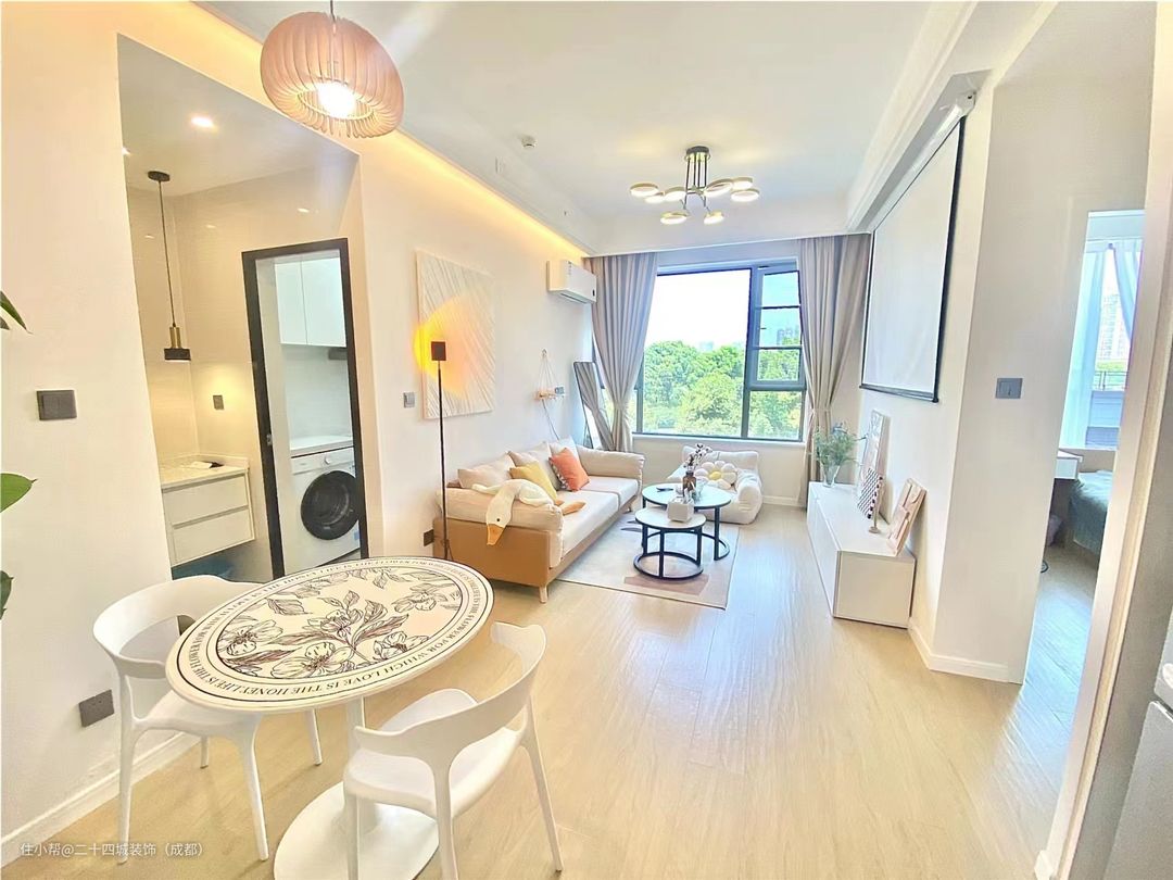 这是一套非常温柔的奶油风套二,户型不大,只有两个小姐姐居住,算是闺蜜二人合资买的房,简单温馨的设计,加上年轻人的“私人影院”,让生活没有距离感。