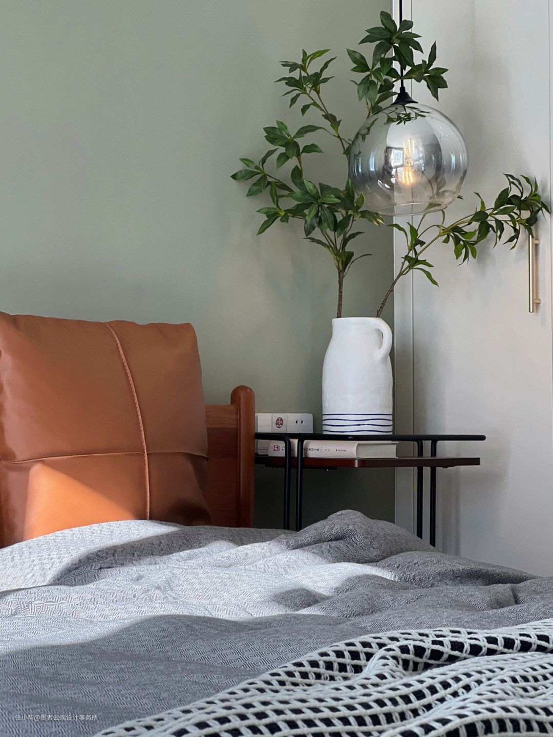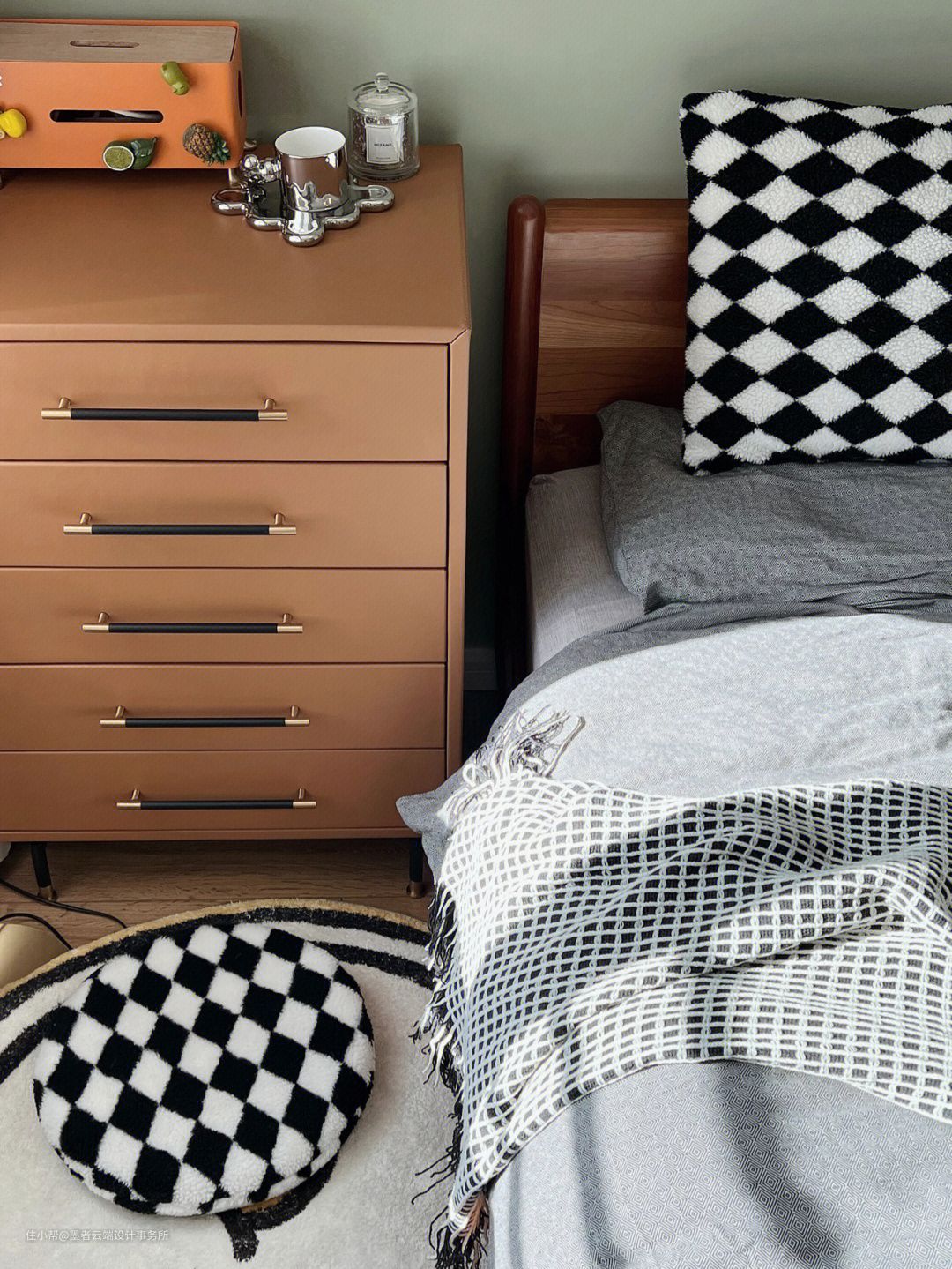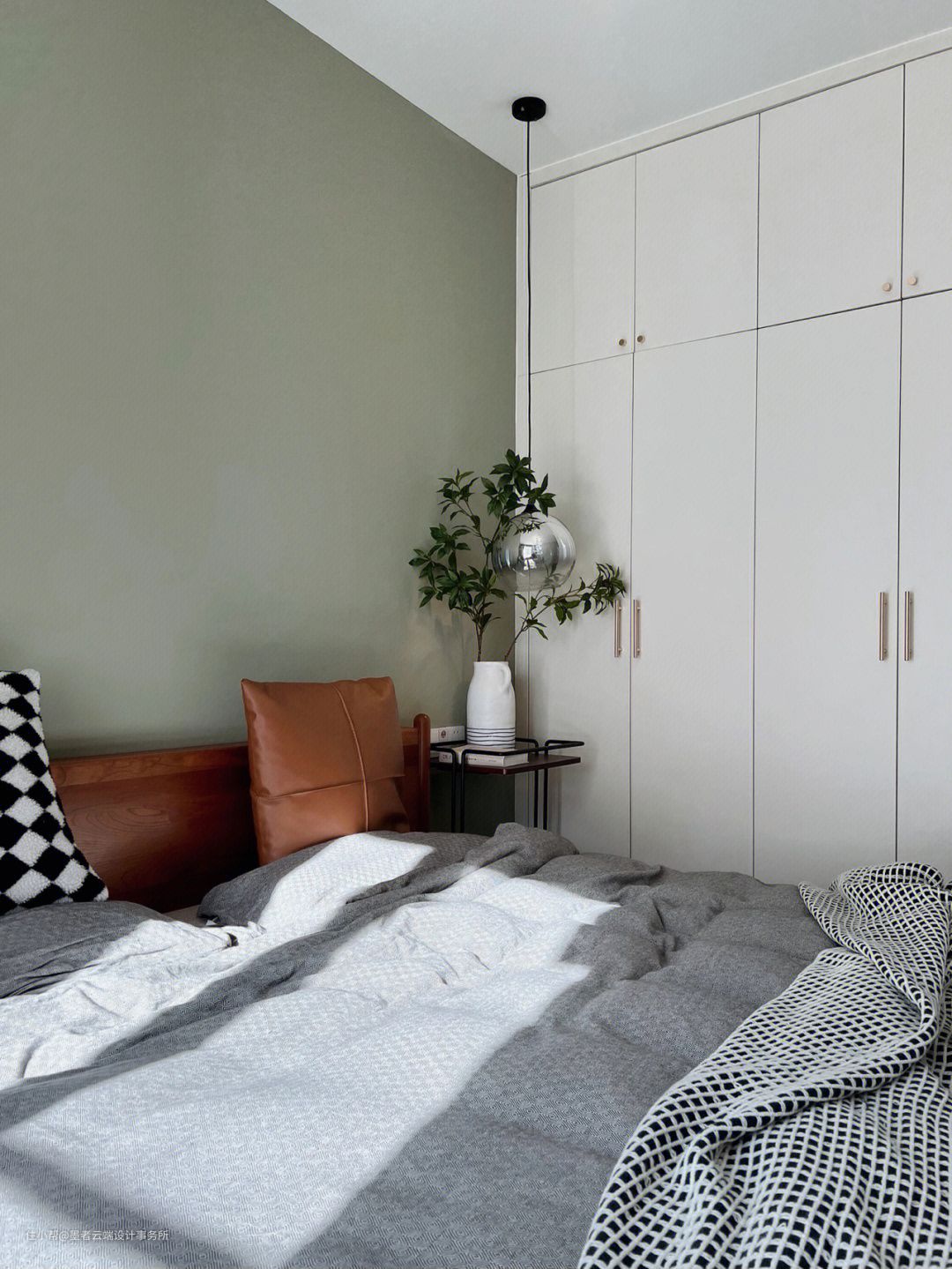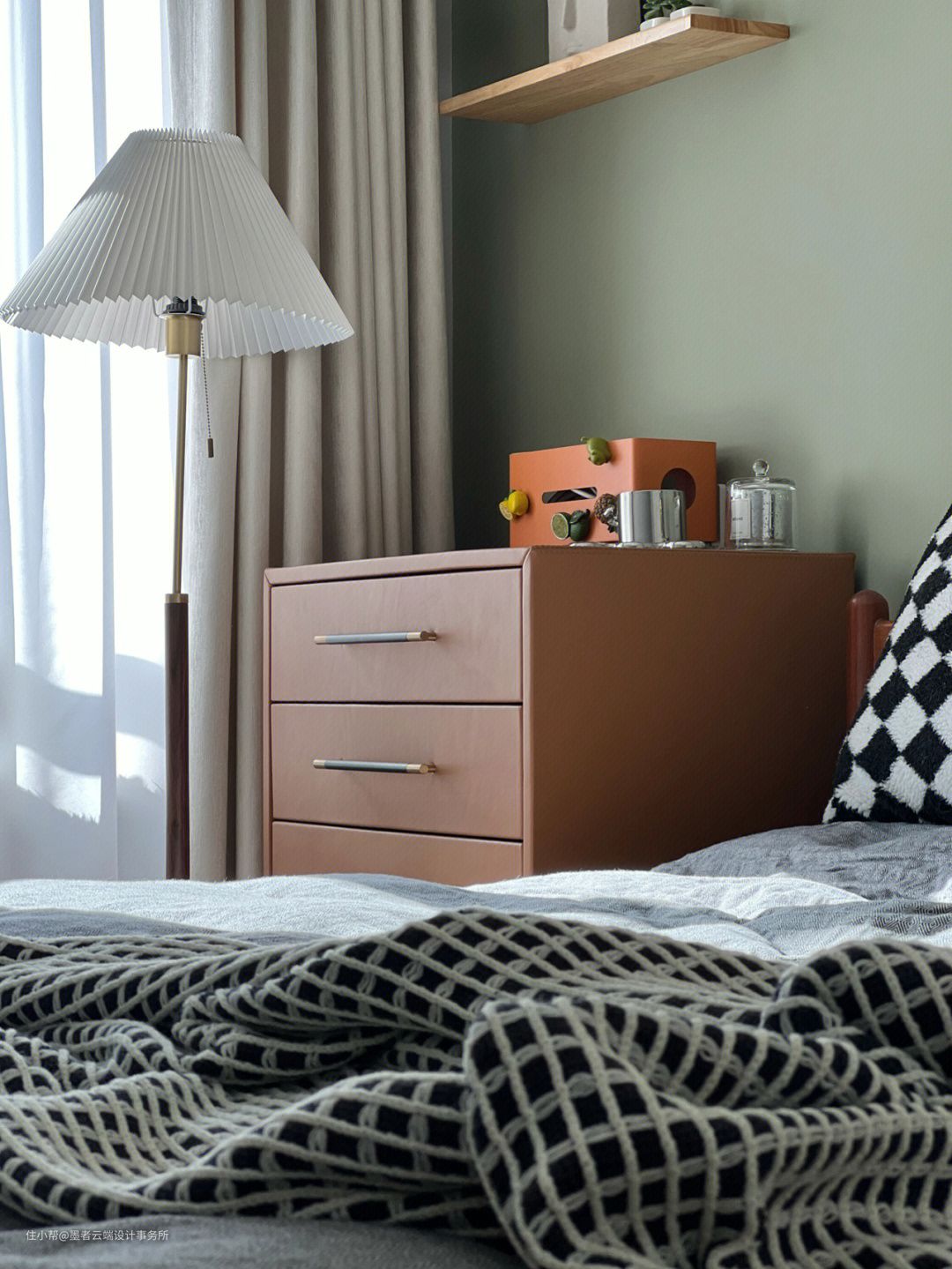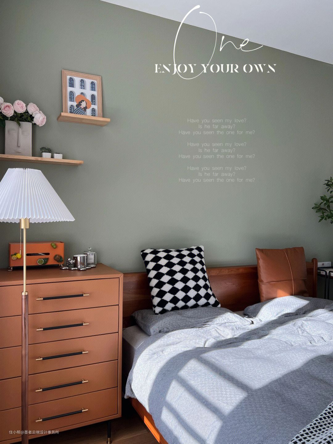 灰绿色➕暖棕色|复古小户型卧室色彩搭配