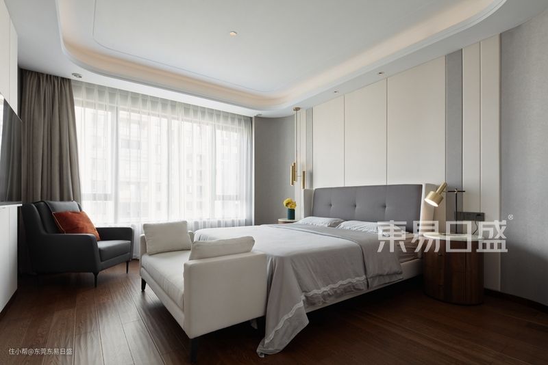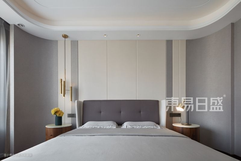 设计师在客餐厅于质简的空间中,点缀诸多细微元素,以咖色地毯,带质感的布艺沙发及灰色窗帘作为主色调,给予宁静而素雅的体验,从而去体验、发现和感受生活中的美。卧室上简约而不失简单,营造出让人倍感宁静舒适的现代简约生活方式,灰色则能体现出内敛与沉稳,正如天生丽质的自然之美一样怡人快心。