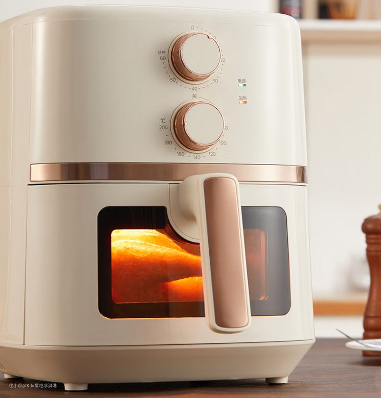 空气炸锅刚流行起来的初代产品很多都是不可视的,这就导致一些刚学做饭的小萌新们闹出了一些笑话。因为不可视,食物放进去加热,也不知道到底炸的如何,中途打开又容易被烫到,甚至中断加热还会影响口感,或者直接扔进去不管了,最后都烤焦也不知道。