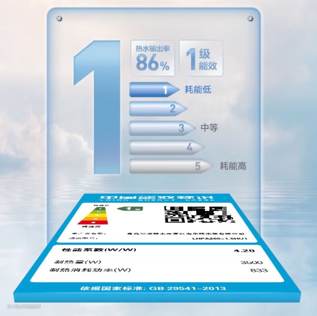 空气能热水器的能效分为最低5级能效,最高1级能效,超过5级以上的能效不允许在市面上销售。