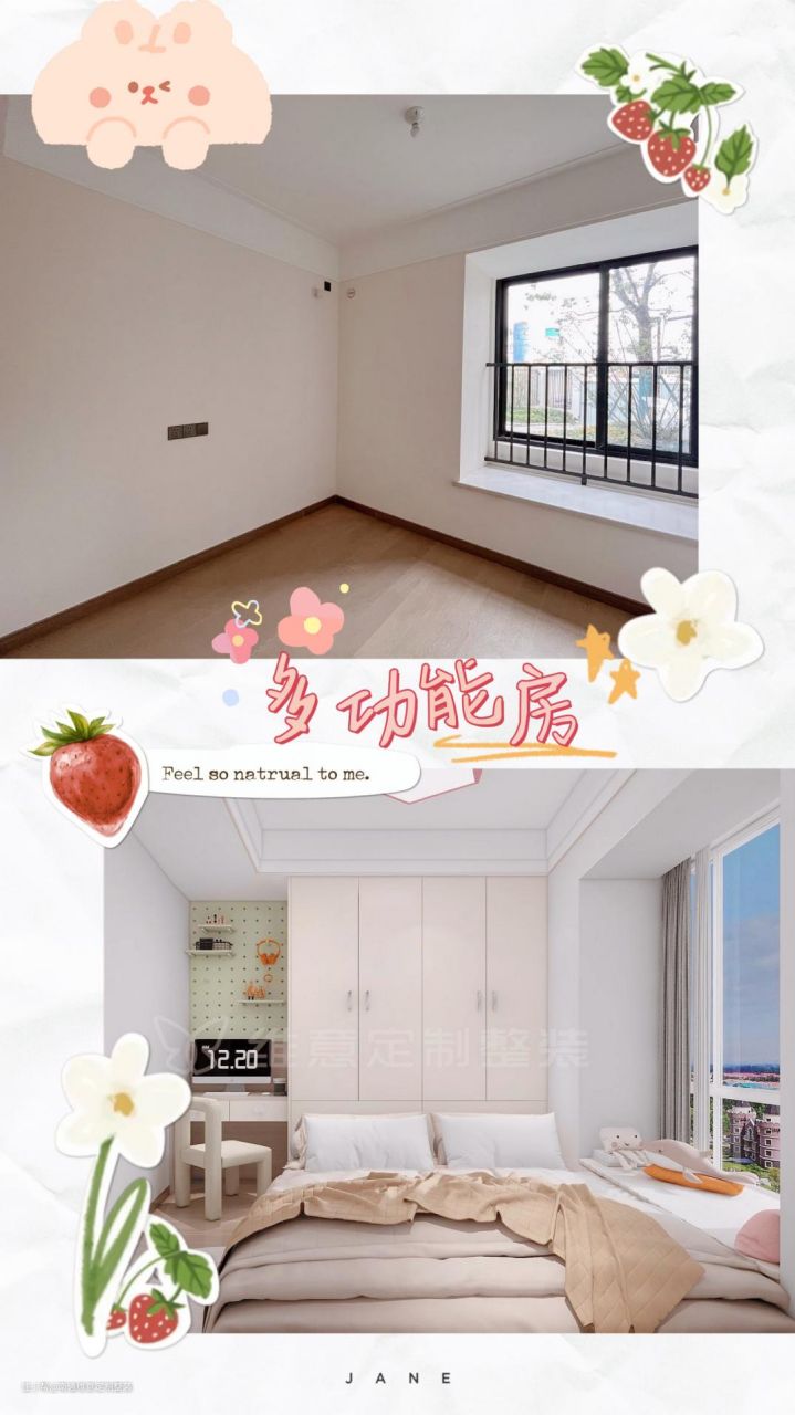 集休息和学习一体的多功能房,靠飘窗放置床,飘窗不但可以休息休闲,还能放置玩偶衣物等;床头定制衣柜,一门到顶不浪费空间,还省去了打扫的麻烦,衣柜边放置书桌,充分的利用了有限的空间。