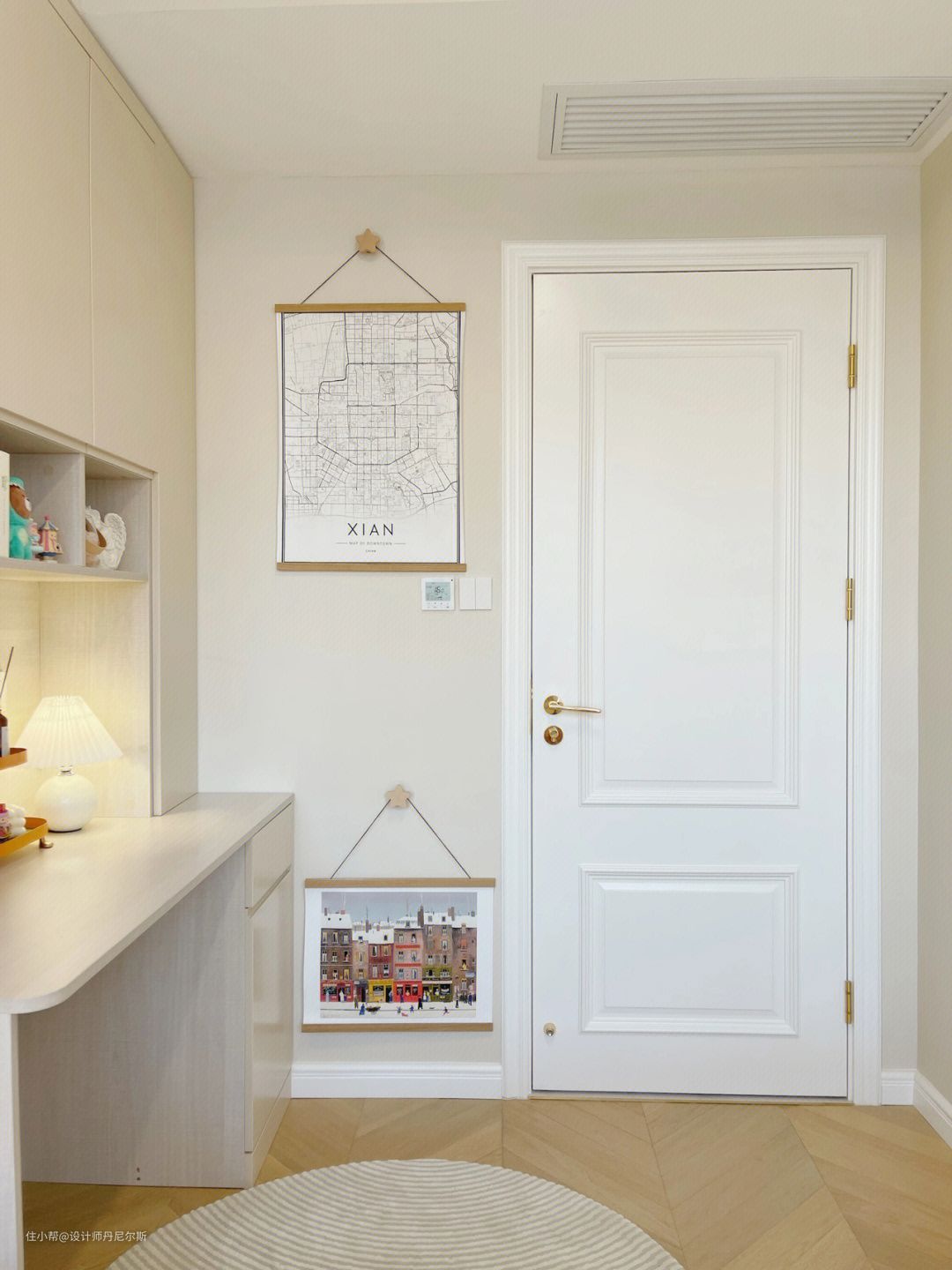 墙面乳胶漆是佐敦的秘境系列1519,顶面是佐敦优森系列的纯白色,木地板是生活家的鱼骨拼,无主灯设计~