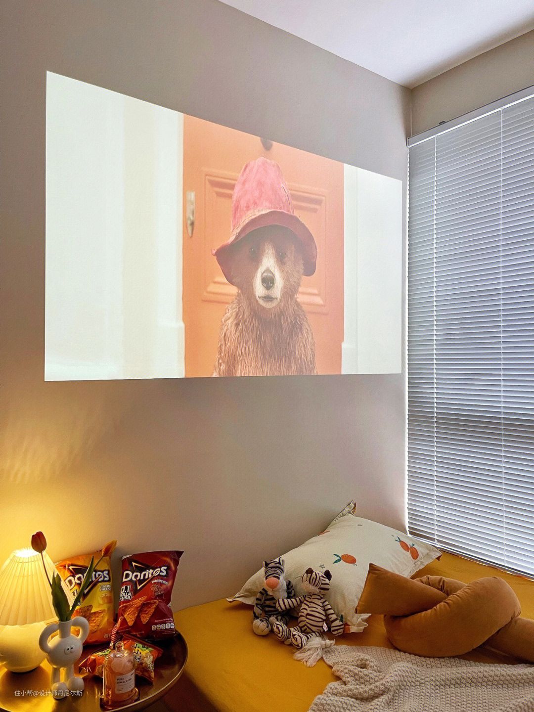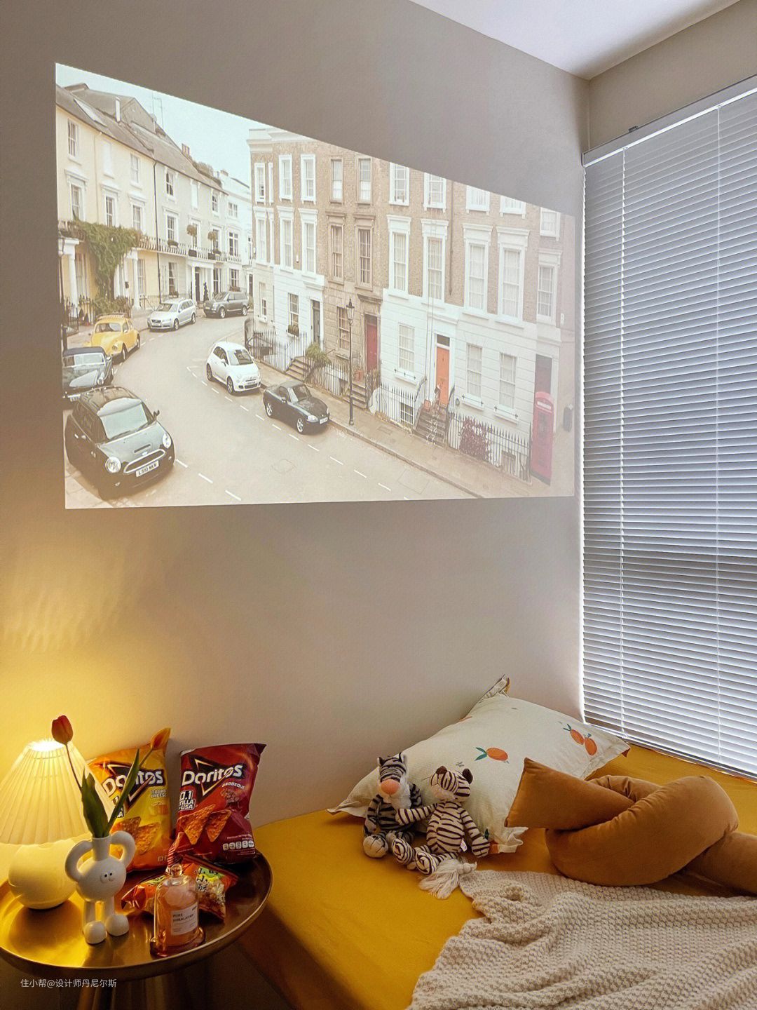 此外专门留了一整面的白墙,就是zui舒服的专属影音室~白天在房间看效果也很好,周末准备一大堆喜欢的零食,舒服的窝在床上喝着饮料看电影,简直太美好了~