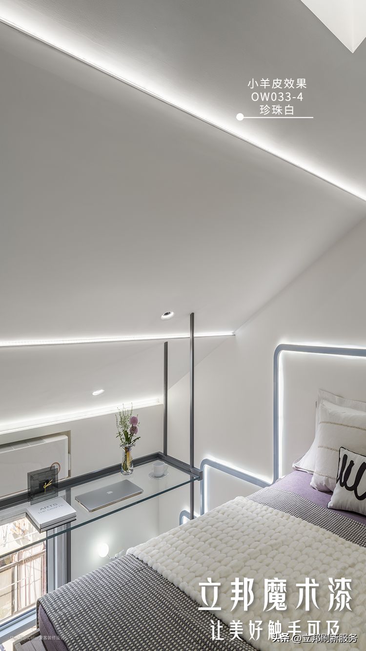 ▲《梦想改造家》第九季第六集中,全屋采用立邦魔术漆小羊皮效果,蛋壳光泽与羊皮肌理,让高级质感融入生活和这个简约的空间。