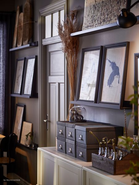 用画框打造的一整面艺术墙,把家“搬进”格调满满的北欧民宿中。莫兰达带有独特的凹槽设计,可以稳稳卡住画框,不用担心它们掉落下来。