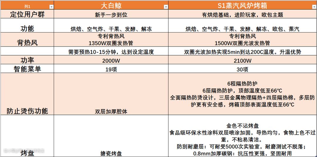 最后给大家做一个表格,让你们在对比两款产品的时候做到心中有数。也好过自己去做功课。双十一想买烤箱的朋友,可以趁着这个时间入手,不过即使错过了也不担心,除了双11还是双12 .