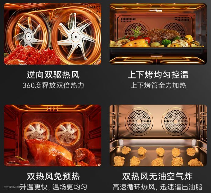 这是因为,预热的目的是怕机器里温度不均匀导致烹饪效果变差,而双热风能够快速均衡蒸烤一体机内的空气,而双烤管则是双向加热,让温度上升得更均匀更快,如此双管齐下,烹饪效果必然提高。