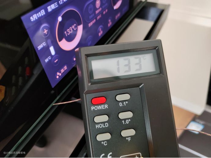 蒸烤一体机面板上显示的温度和热电偶测试出来的温度也是一样的,精确。
