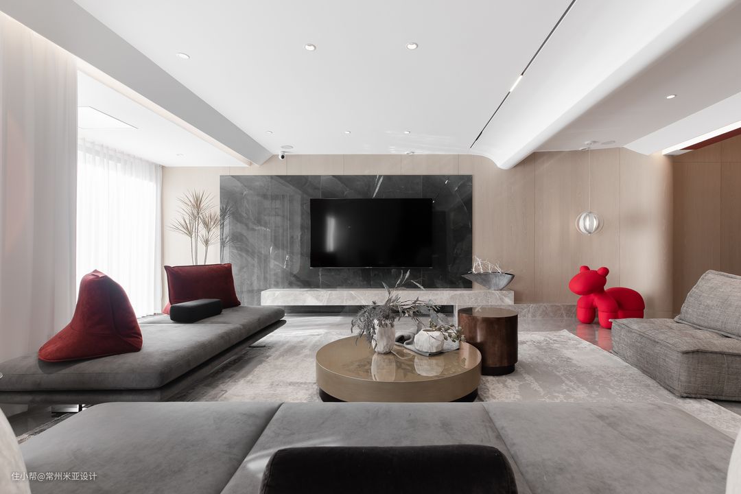 舒适的居家感受同样是设计必不可少的一环,法国进口沙发,可承重人体的同时又能起到保护作用;客厅的阳光从纱窗透过,明亮而温暖;采用大理石电视背景墙和台面,与客厅整体氛围完美融入,质感满满。