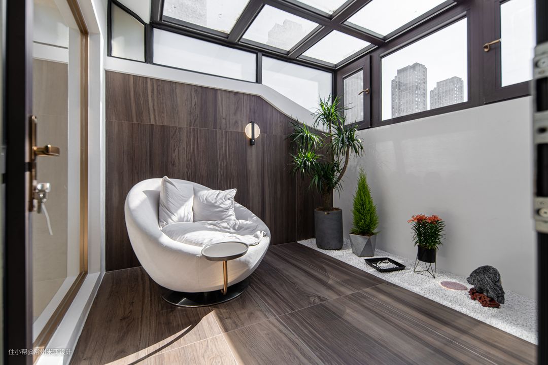 推开玻璃门,仿若是另一个小世界。“阳光花园”是女主人最爱的地方,采光极佳,于旋转沙发上或休憩或喝茶,好一份惬意。