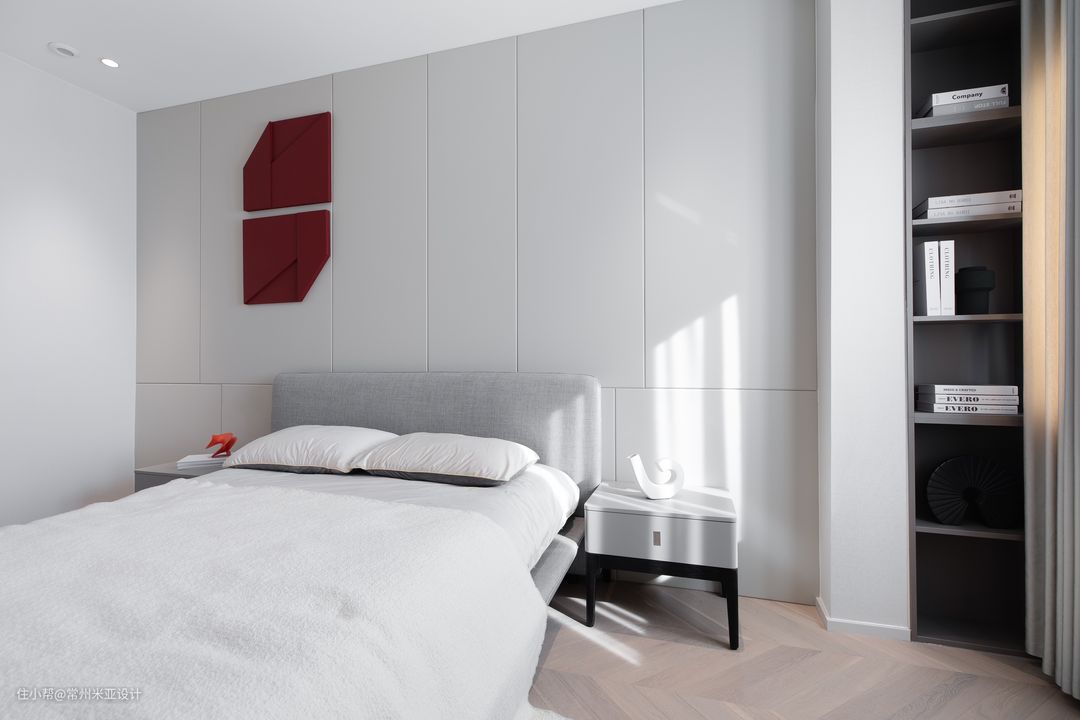 儿童房整体以灰白两色为主调,去繁就简,干净清爽。在最右侧的墙角处特意打造的读书角,是专属于孩子的读书妙地。