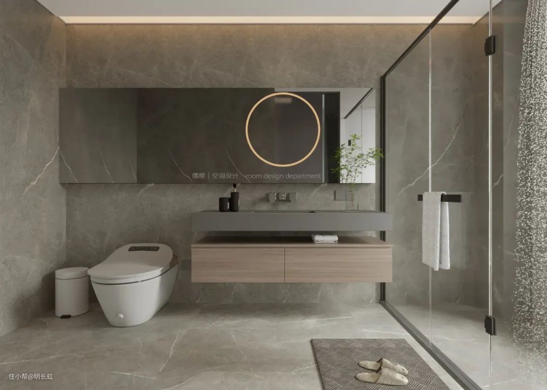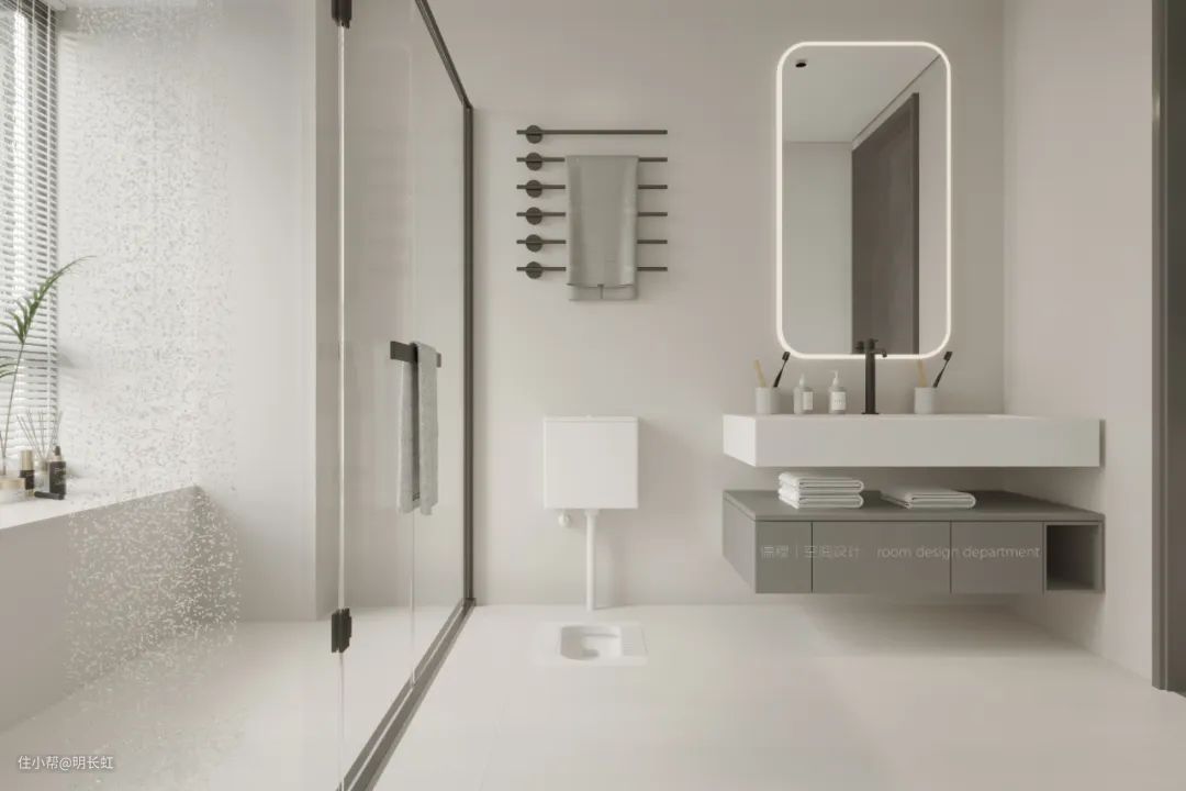 卫生间也算是一个家的第二门面,灰色和白色的装修,看上去整洁有质感,在这里的时间都会变得轻松自在