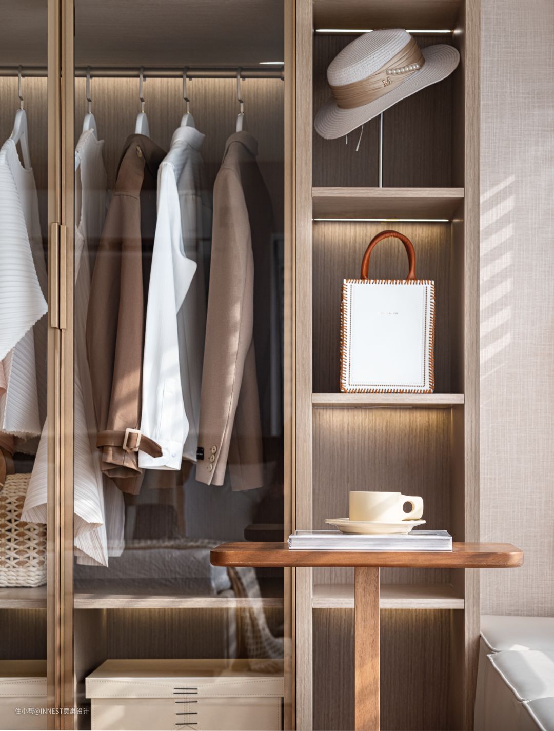 女主人热爱各种自然色系的单品,羊绒衫,阔腿裤,针织衫,她将在衣物温柔柔软的质感和纯粹的色彩中,感受到朴素的诗意,放进自己的卧室。