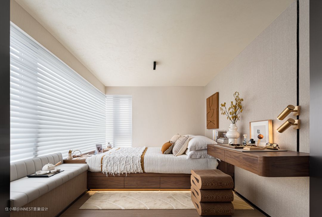 老人房沿袭了整体的色系,原木质感为主,设计方面也更加注重安全与实用,巧用了包边无棱角等小心思。家有一老如有一宝,毕竟陪伴才是最长情的告白。