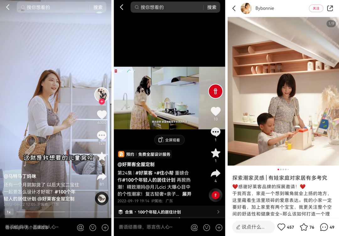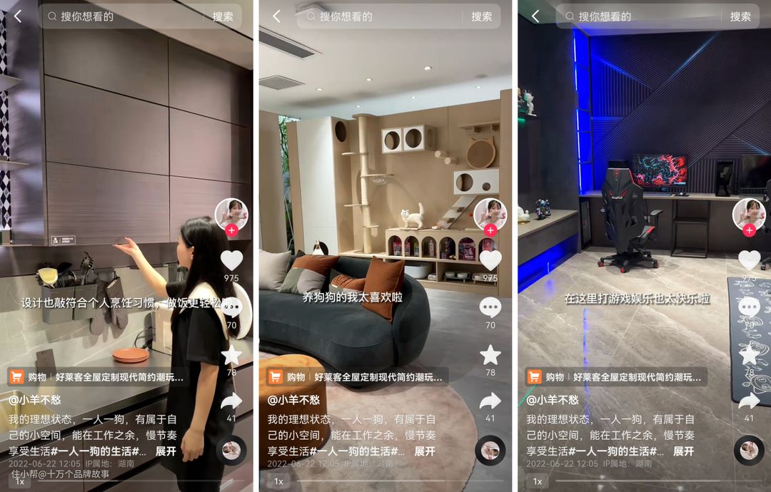 其中我认为关键一步就是,家居品牌需要聆听年轻人的意见。只有深入了解到他们想要什么样的家,才能真正从源头出发,满足多元生活方式。像#100个年轻人的居住计划#这个话题就是由定制家居品牌好莱客发起的,他们除了与拥有不同生活方式的年轻人共同探索更多潮家生活方式,还从年轻人的消费趋势、兴趣出发,量身定制了潮玩收藏、运动健身、国潮直播、电竞游戏等主题新空间;而针对他们的个性化需求,更推出东方·雅集系列、伊鹿系列、慢托邦系列、迷笛系列等来助力定制理想潮家。