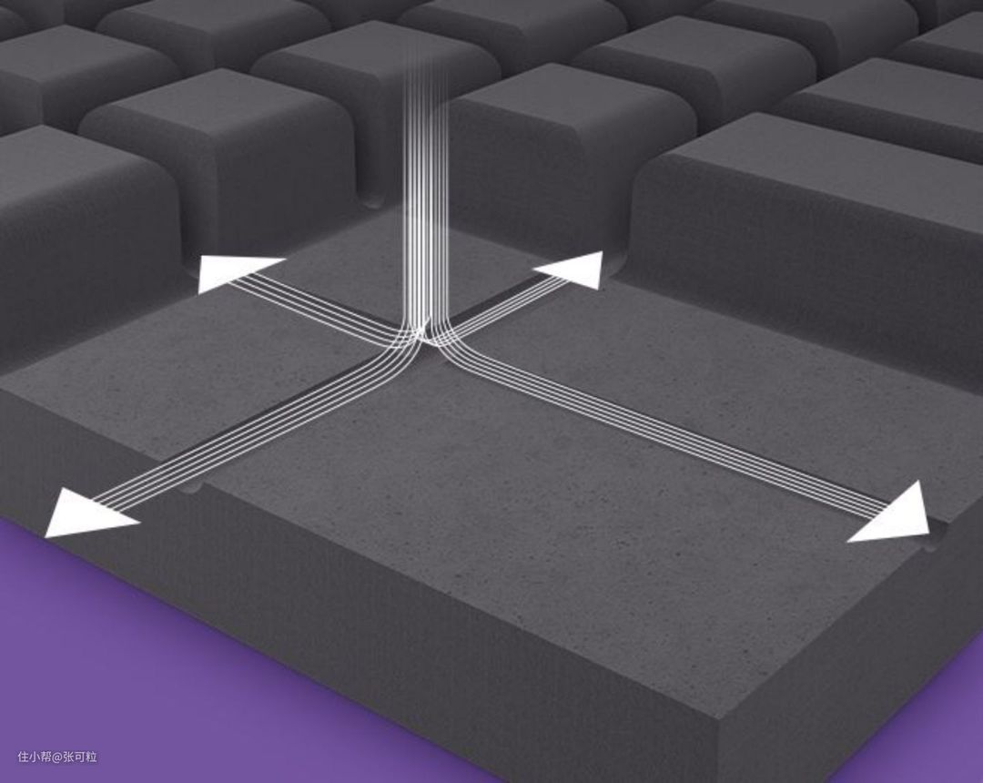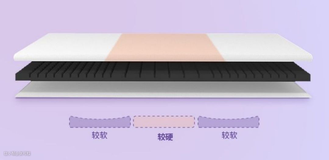不得不说,菠萝斑马的魔方床垫科技感真的很强,床垫整体部分上中下三段设计了不同的硬度,两边较软,中间较硬。