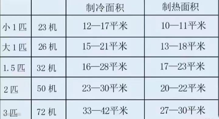 匹数买大或买小了制冷/制热效果不佳,也费电。 关于空调的匹数选择,大致可按如下方式进行选择: