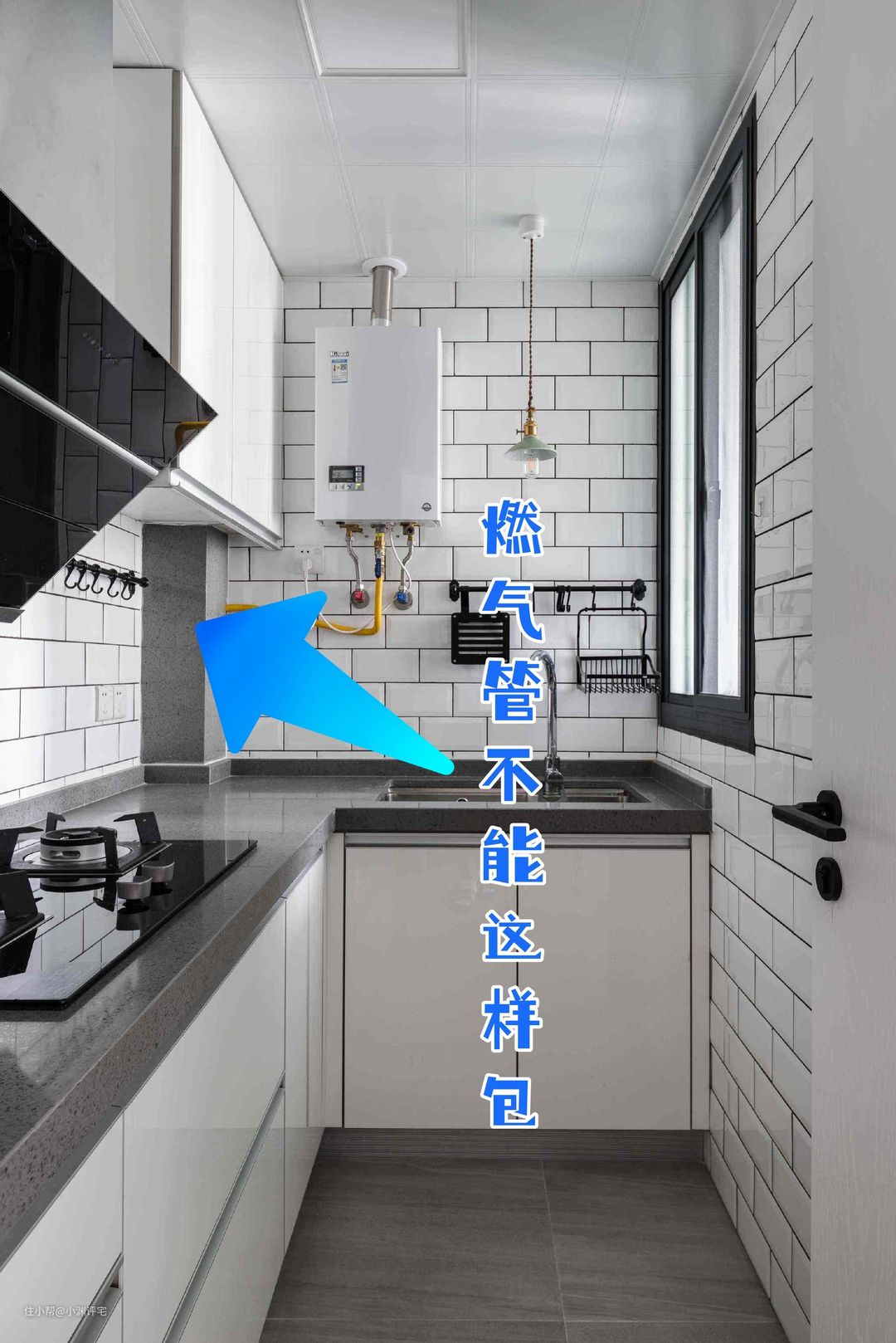 ②必须能随时打开,特别是那根纵向的竖管,很多人直接用瓷砖或者pvc包起来了。正确的做法是用定制橱柜包,并在上面装一个门。