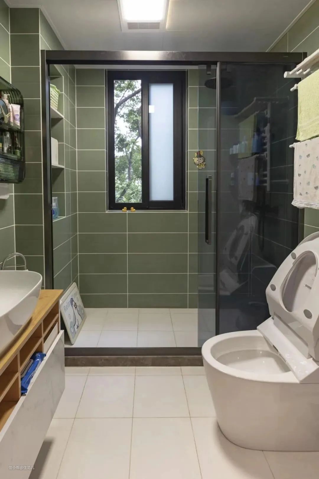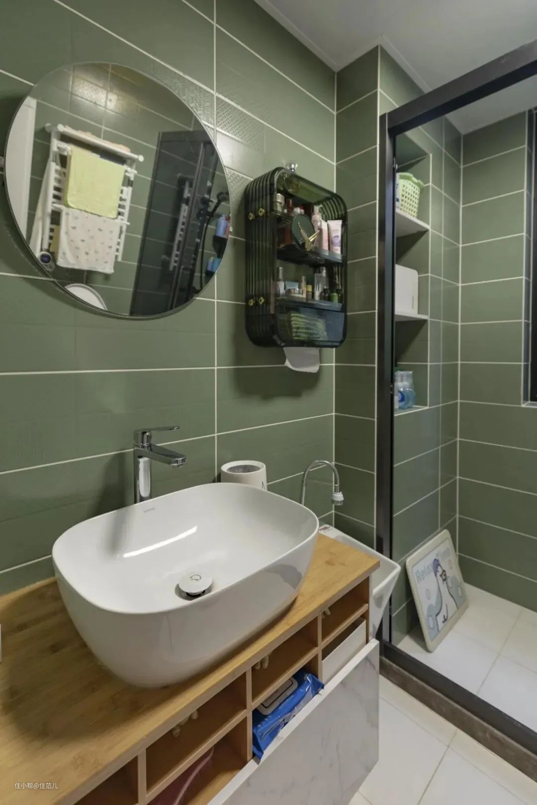 ·然后还要注意对缝,隔板和外面的瓷砖缝对不上是会对强迫症造成致命伤害的,并且看起来线条凌乱,也达不到极简的效果;