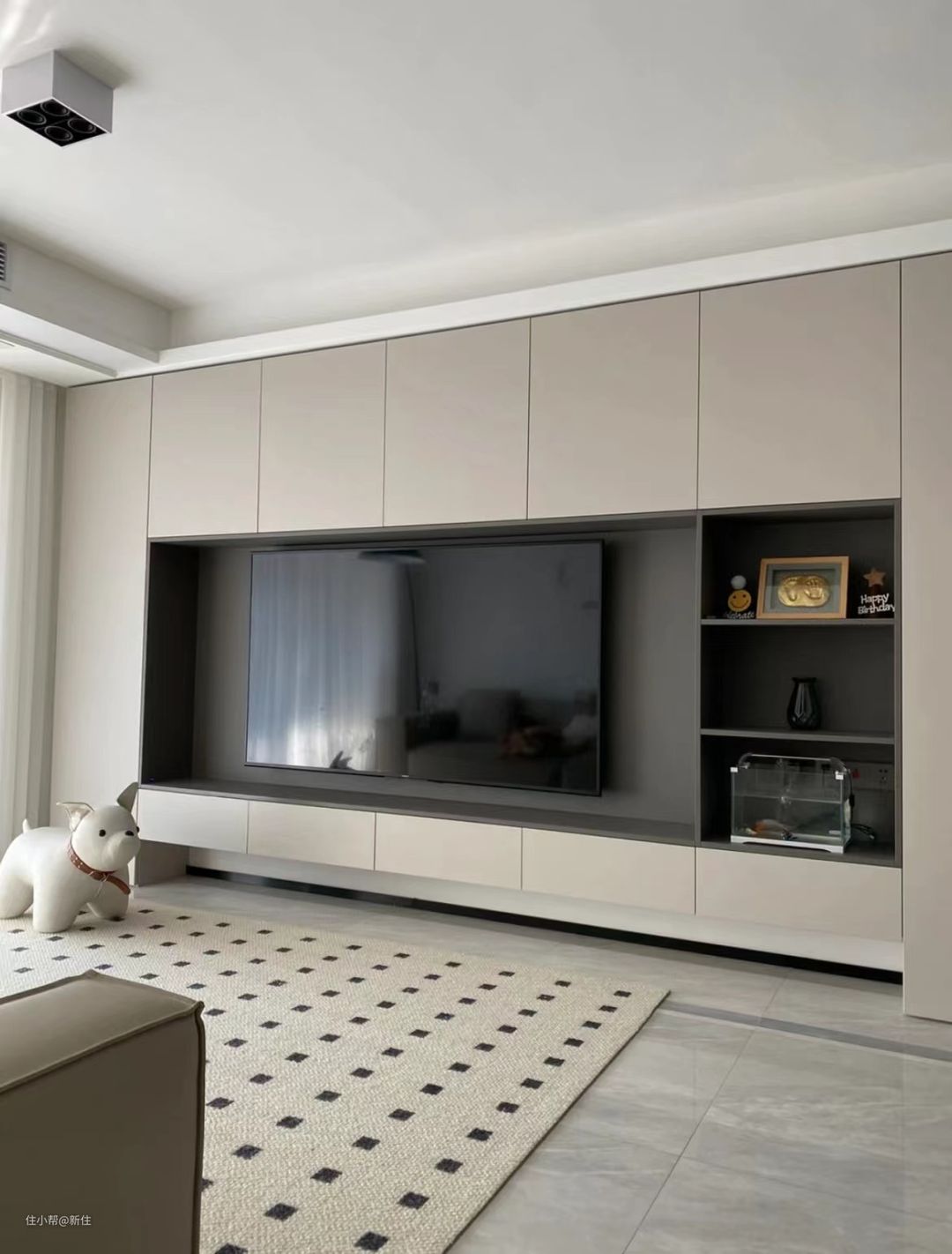 同样是满墙电视柜,但每个人对家庭的布置、分配、需求不同,完全可以根据自己的调性去做,只需要记住共性就可以了。