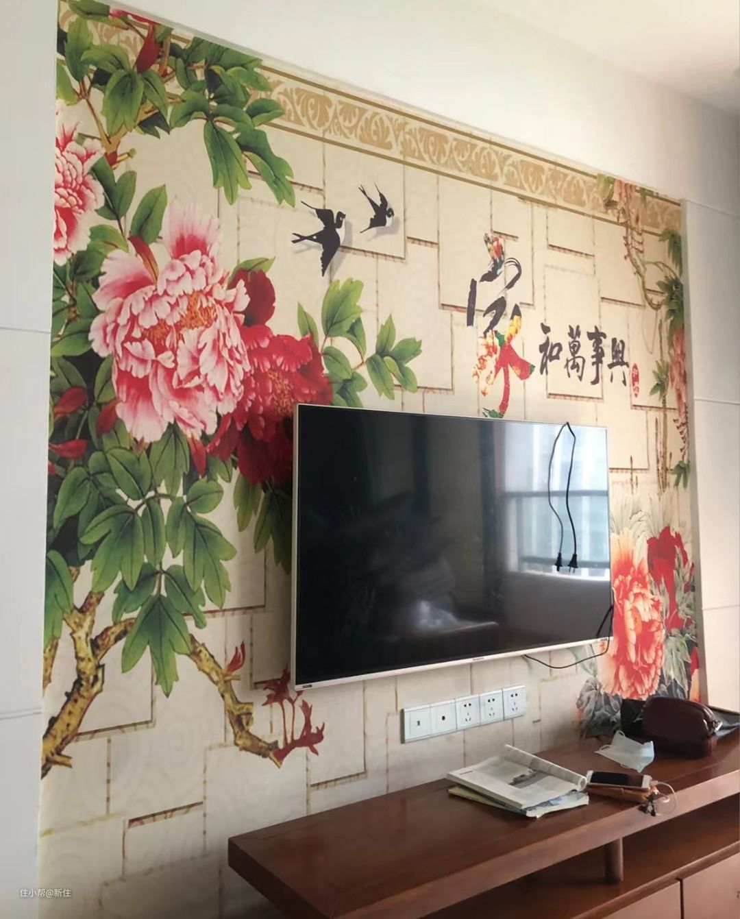 2、父母忠爱的花开牡丹富贵风电视背景墙