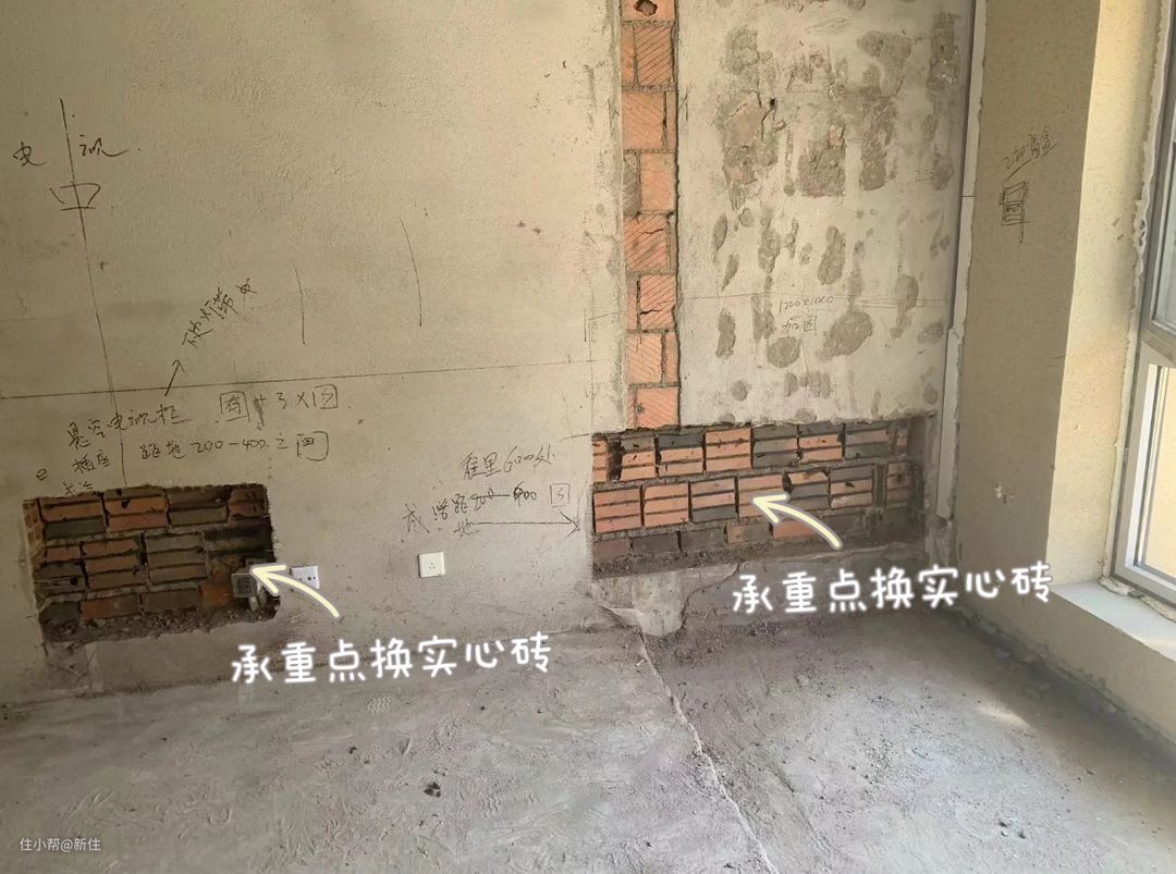 二是精准替换:将承重的螺丝点位,挖几个洞,再砌实心砖,图水泥。