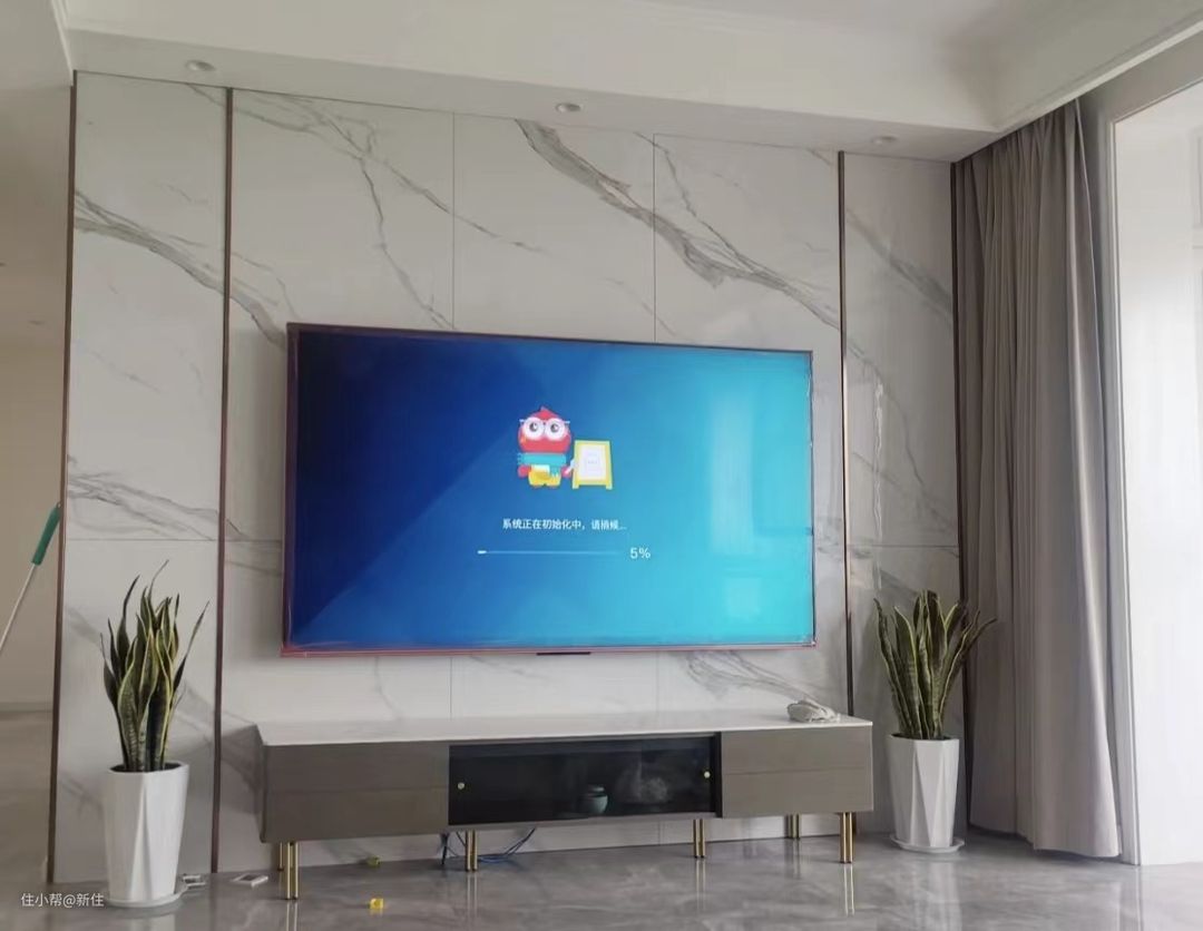 至于,电视区高度预留,应大于等于100寸电视高度,原因是即使现在用不了那么大的电视,之后想换大电视时尺寸也足够。