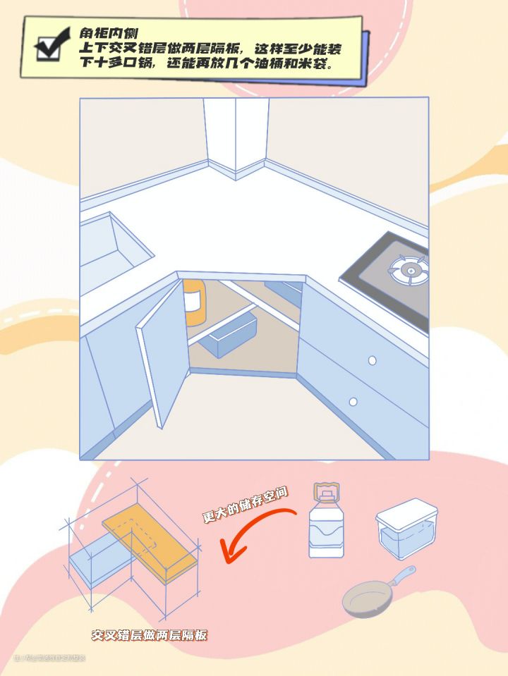 你还在嫌弃厨房转角处东西拿取不便,空间浪费吗,三种厨房转角柜的设计,让你可以充分利用厨房里的每一寸,小户型的一定要收藏哦~