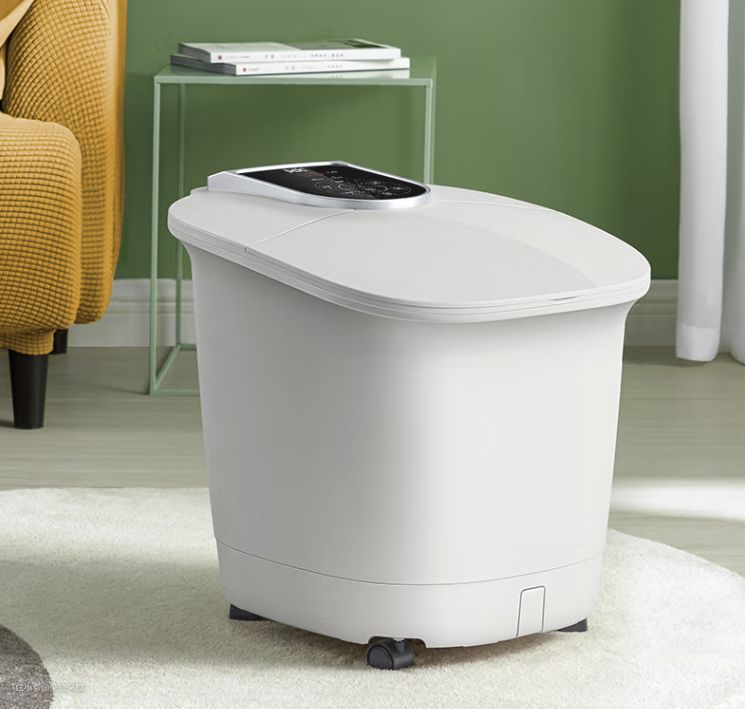 带有按摩椅机芯,精准分区按摩,有揉捏、指压、点推等多种手法,力度可调节,还包裹有TPE软胶按摩垫,非常舒适,温度可以调至48摄氏度,水位可以达到25厘米,非常实用。采用三重恒温精控技术,有水温探测器实时监测温度,能够有效保持恒温状态,不会出现忽冷忽热的情况,加热好的水通过冲浪口喷出,可以有效舒缓小腿压力,尤其适合每日走路比较多的人。