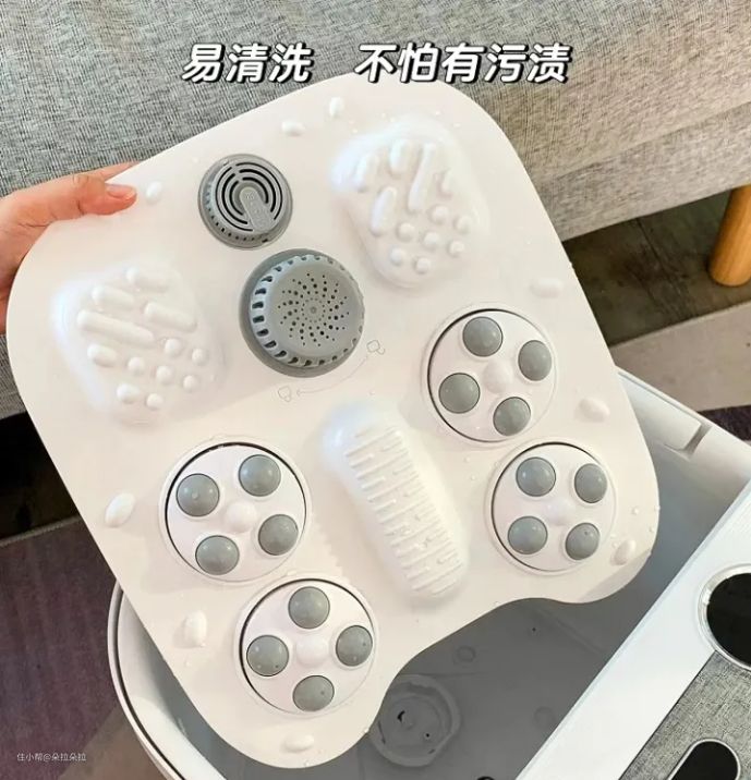 泡脚桶底部的按摩盘是否可以拆卸,这关系到能不能清洁干净的问题。不能拆卸的按摩盘就只能做一下简单的洗刷,一些缝隙根本就没办法洗到,时间长了就会滋生细菌。能拆卸的按摩盘则不同,每次泡完脚都可以拿出来彻底刷洗干净,也没有卫生死角,洗完后还可以放在外面晾干避免形成污垢,产生细菌,用起来更放心。