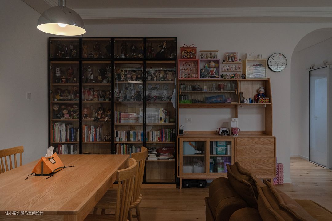 本案的设计柜里放着男女主人各自收集的手办和玩具,加起来确实价格不菲,我们在设计这些陈列空间的时候,根据不同藏品的尺寸,与供应商充分沟通内部空间的分布,可以最大化提高空间利用效率,做到柜内手办展品丰富而不显杂乱。