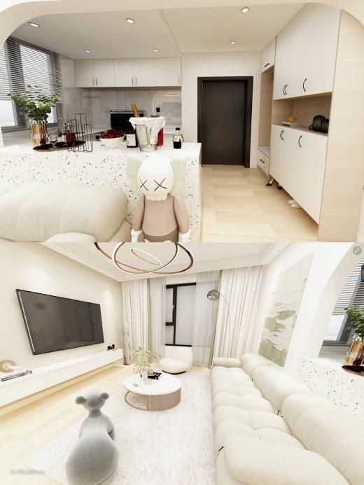 我家厨房太小了,满足不了我们一家人的日常需求,再加上后期也想要孩子参与更多的厨房生活,多互动,就决定做成半开放式厨房~
