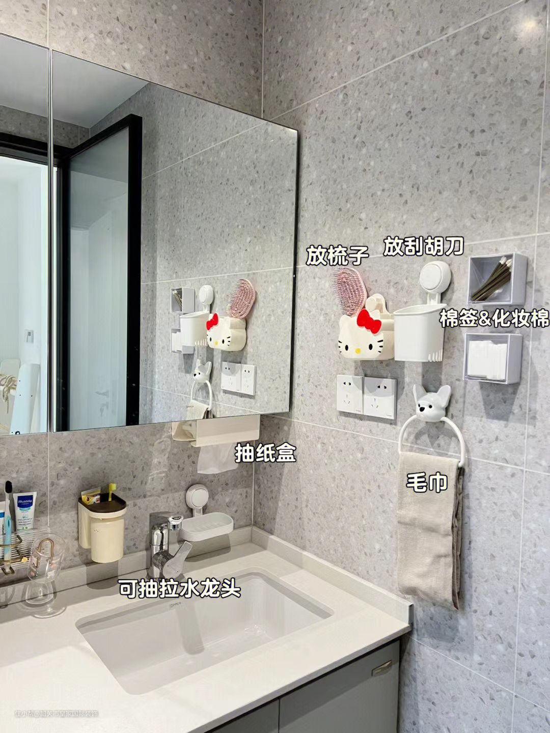 ▪️镜柜和台面的长度一样。洗漱盆留在了靠右位置,这样就算和我老公上厕所、洗漱同时进行也不会互相影响(基本不会出现这种情况)