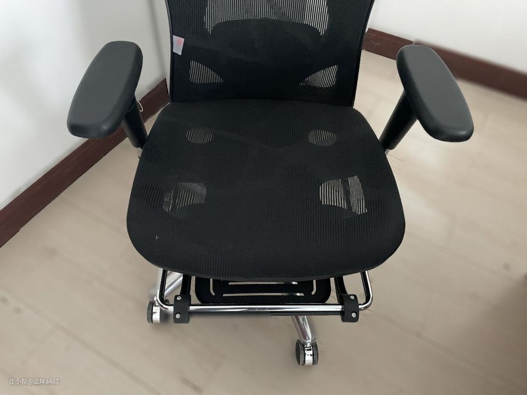 坐垫下面还设计了一个22cm的隐藏式伸缩脚踏,我们午休的时候把电脑椅调节到126°,把脚踏拉伸出来,双腿可以放在上面,让腿部也能得到放松,可以开启午休模式。脚踏采用了钢架支撑,承重比较稳固,使用起来不会摇摇晃晃。