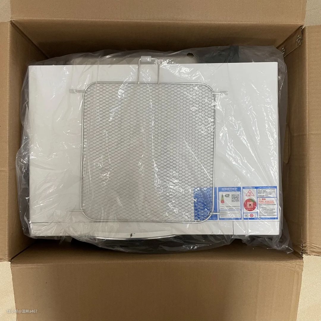 物流很快,第二天就到了,虽然看起来箱子有点大,但是其实不重,我自己从抱着就回了家,500米的距离,我也没感觉到很累,箱内物品包括空气炸微波炉、、烤盘、烤盘支脚,说明书、。