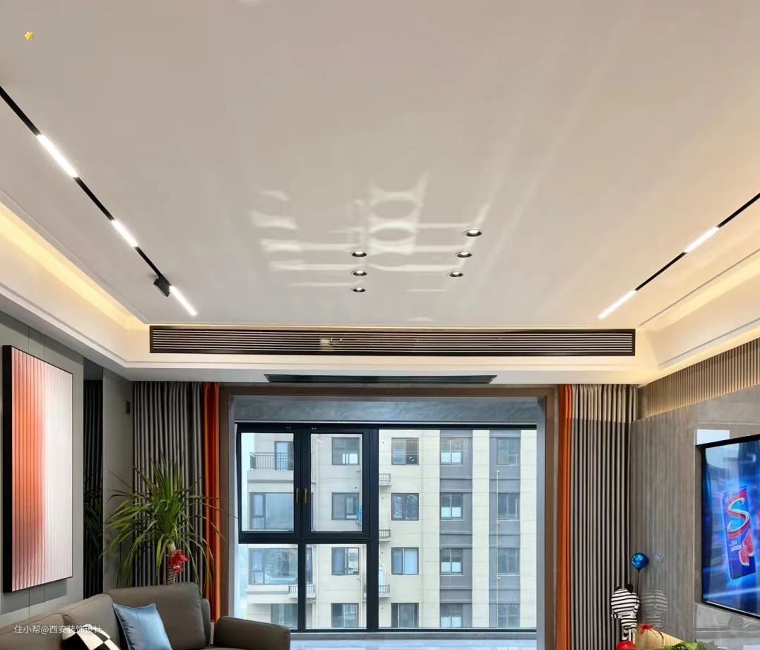 以灰色为主.撞击橙色配色,冷色系明亮的暖色系大胆地放在一起,与高冷热情的设计风格碰撞。这种窗帘对比方案是轻奢设计中常见的组合方案。