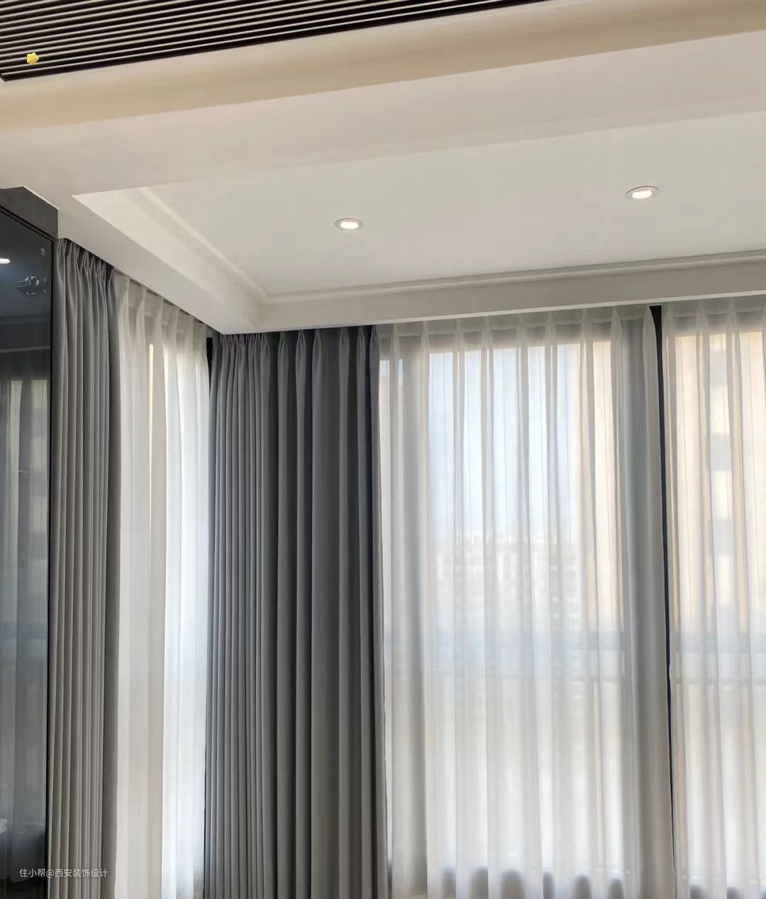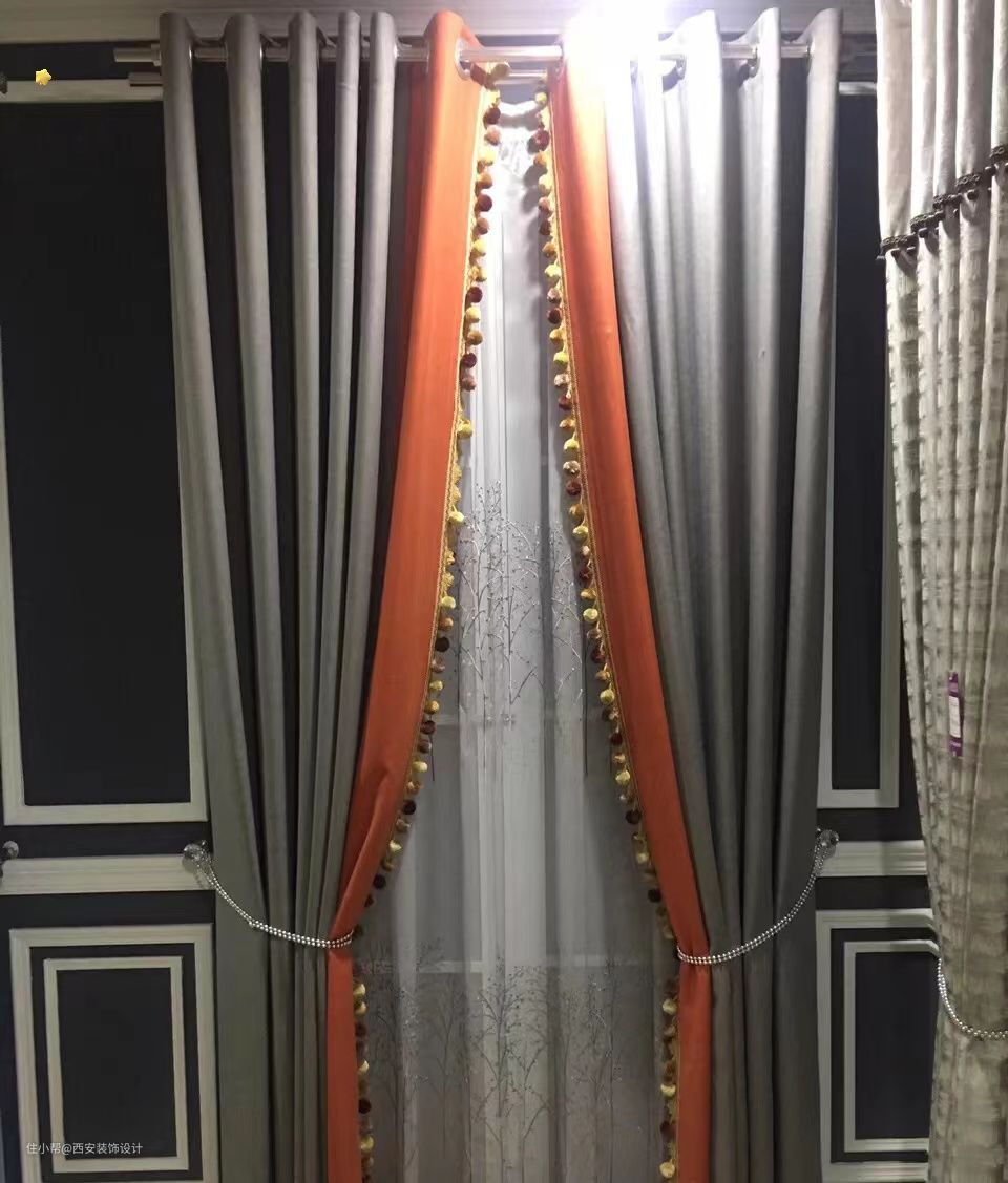 然后,对于窗帘对比色的具体操作,建议操作“两侧大幅中间小截”通过这种方式,窗帘两侧的窗帘拼接后,小的副色连接在一起成为一种比较完整的设计感。