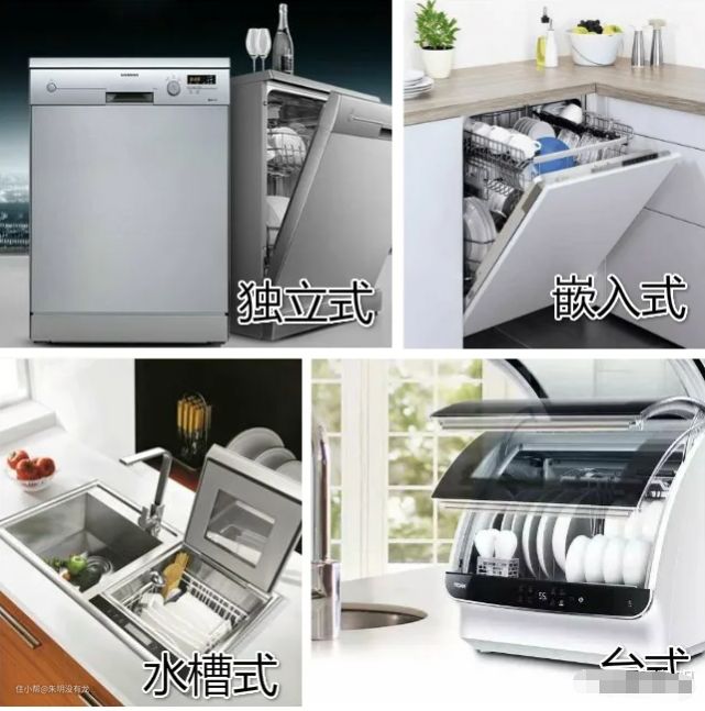 目前市场上的洗碗机,主要分独立式、嵌入式、台式、水槽式四种。